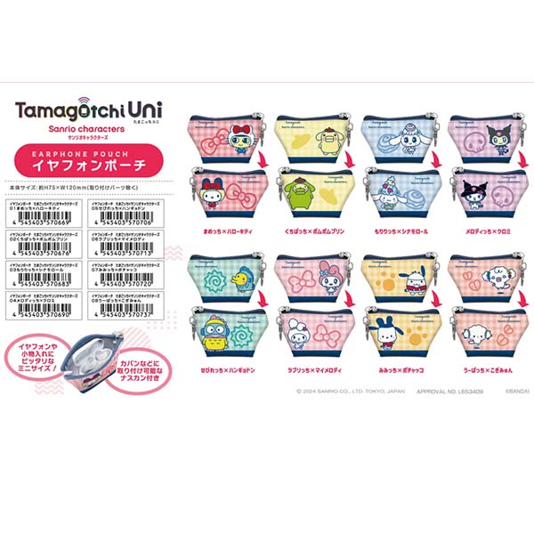 商品说明:本体尺寸:约H75×W120mm(不含安装配件)耳机收纳袋 たまごっち×サンリオ角色 8种类 零售价: ¥780 (含税价: ¥858)